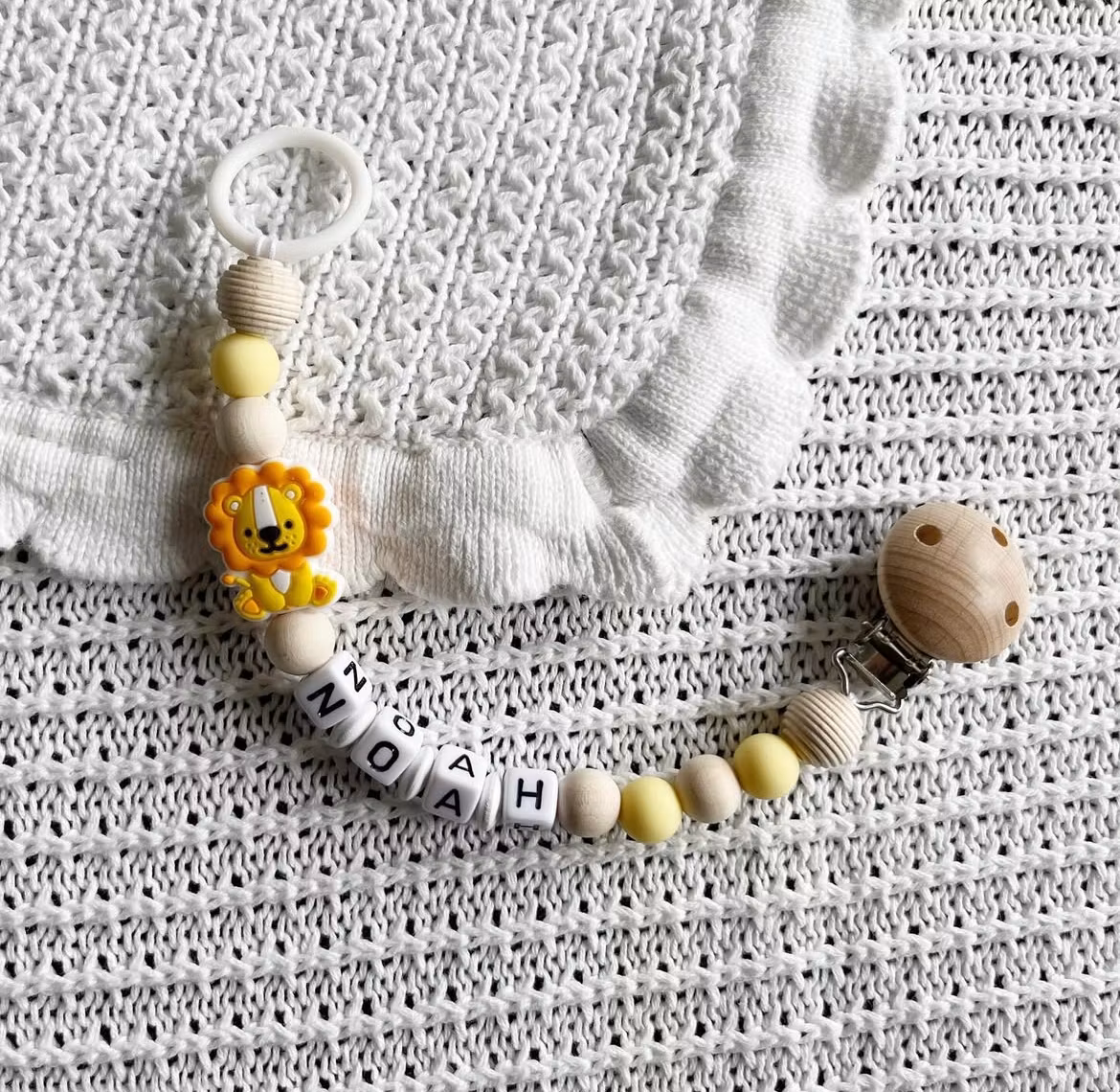 Färgpärlorna är av träpärlor som uppfyller kraven enligt DIN EN 71-3 och EN 71-9. Bokstavspärlorna är av akryl.
