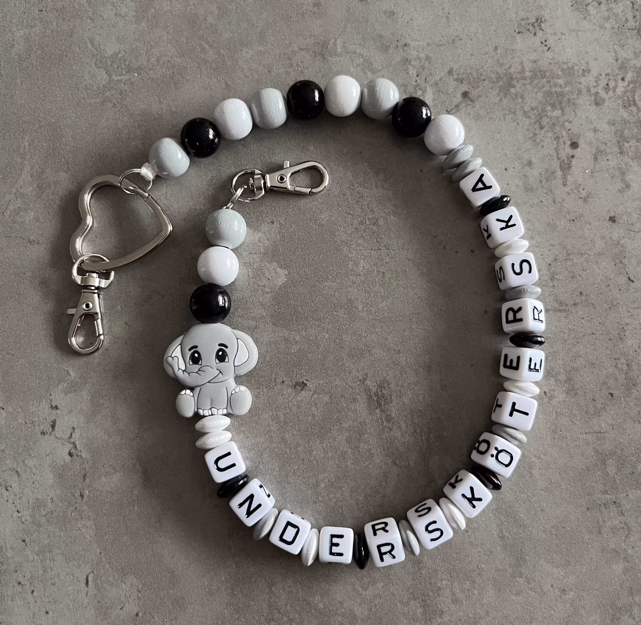 Valfri text ingår men tänk på att utseendet kan påverkas med anledning av kortare/längre text. Tex. vid längre text blir det mindre färgpärlor. Max 20 bokstäver i en kedja är att rekommendera. Om önskemål för längre text rekommenderas istället halsbandskedja.
